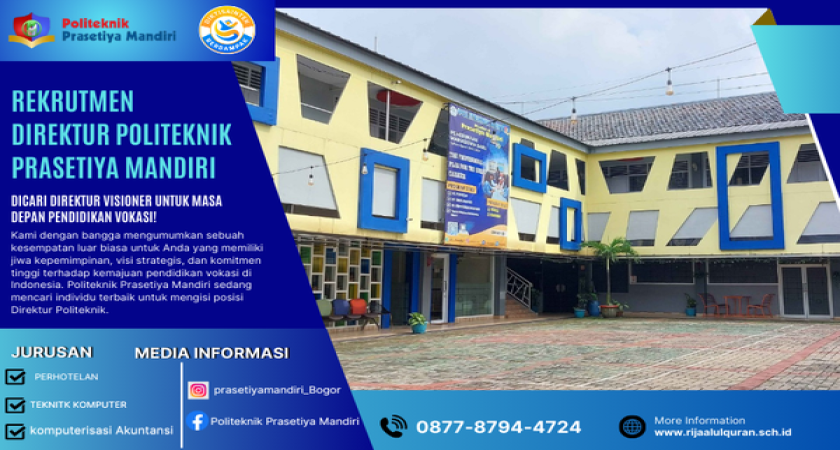 Kami dengan bangga mengumumkan sebuah kesempatan luar biasa untuk Anda yang memiliki jiwa kepemimpinan, visi strategis, dan komitmen tinggi terhadap kemajuan pendidikan vokasi di Indonesia. Politeknik Prasetiya Mandiri sedang mencari individu terbaik untuk mengisi posisi Direktur Politeknik.