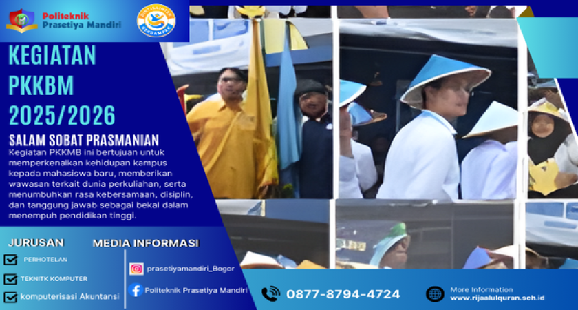 Pada tanggal 30 September – 1 Oktober 2025, Politeknik Prasetiya Mandiri telah melaksanakan kegiatan Pengenalan Kehidupan Kampus Mahasiswa Baru (PKKMB) Tahun Akademik 2025/2026 dengan tema “Berani Melangkah, Siap Berkarya, dan Wujudkan Masa Depan Gemilang”.