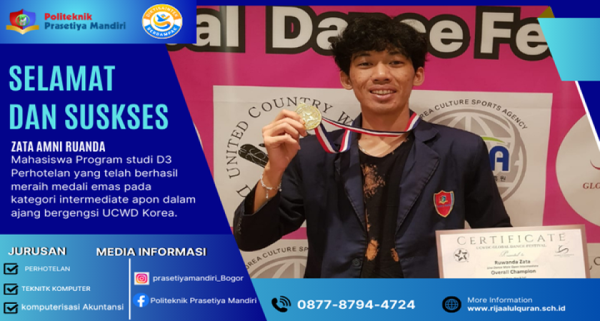 Prestasi ini tidak hanya menjadi bukti nyata dari kerja keras, dedikasi, dan semangat juang Zata Amni Ruwanda dalam mengasah kemampuan, tetapi juga menjadi wujud komitmen Politeknik Prasetiya Mandiri dalam mendukung mahasiswa untuk terus berkembang dan berprestasi, baik di tingkat nasional maupun internasional.